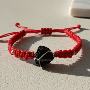 Pulsera dije de turmalina tejida hilo rojo