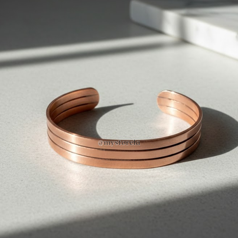 Equilibra tu energía con una pieza que une la robustez industrial con la elegancia artesanal. Nuestro Brazalete de Tres Canales está fabricado íntegramente en cobre de alta pureza, ofreciendo un diseño estructurado y minimalista que destaca por su simetría y sus propiedades ancestrales.