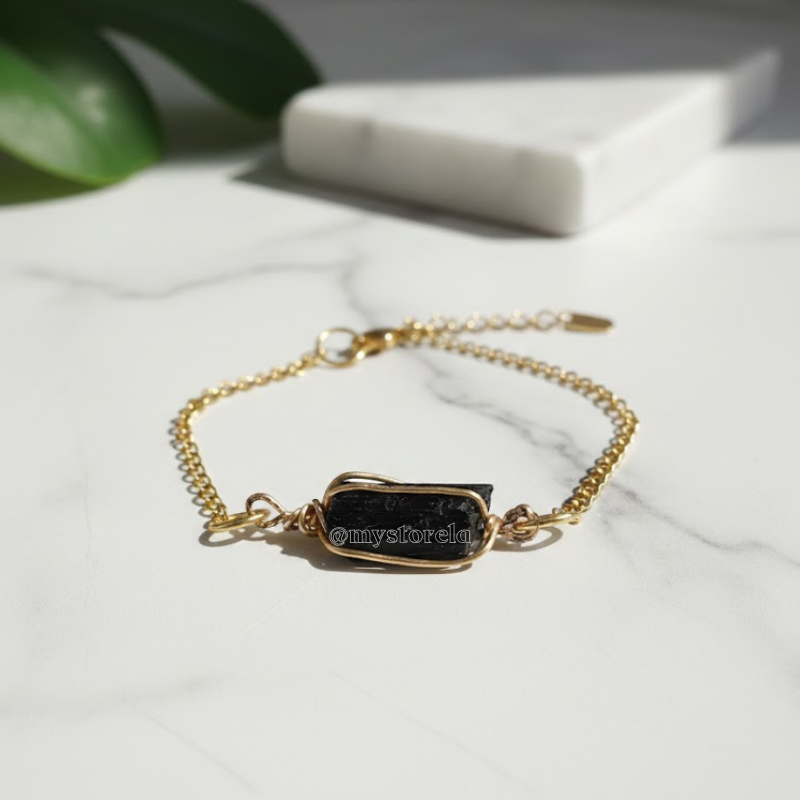 Set de collar de acero + pulsera de turmalina en alambrismo